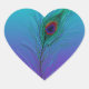 Autocollants en forme de cœur avec plume de paon turquoise à violet.