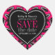Annoncez votre prochain événement spécial ! Finition brillante personnalisable autocollants en forme de cœur | Motif magnifique réalisé avec rose chaud et blanc sur fond noir. Enregistrer la date, mariage, faire-part de fiançailles en forme de cœur. . Tout le texte ici est modifiable (personnalisable) ~ convient pour annoncer tout événement. Feuille de 20 autocollants.