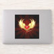 Coeur rouge vif d'un ange aux ailes dorées brillant dans l'arrière - plan rouge foncé et rayonnant décoré d'un motif.