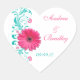 Sticker Cœur Sceau d'enveloppe Mariage rose Gerber Turquoise
