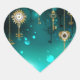 Or, clés antiques avec engrenages et cadrans accrochés sur chaînes dorées sur arrière - plan vert lumineux.