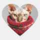 Sticker Cœur Sphynx sans cheveux Chat dans un pull