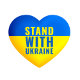 Un coeur aux couleurs du drapeau ukrainien, bleu et jaune, avec le texte "Stand with Ukraine".
