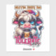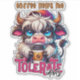 A funny, sarcastic, and colorful design showcases an adorable highland cow clutching a takeout coffee cup. The cup features a coffee bean and a black lid. The cow, with its big blue eyes and black-and-white fur, adds charm to the design. The vibrant text reads, "Coffee helps me tolerate idiots." This design is available on various products, making it a perfect gift for coffee lovers.