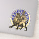 Lion vintage de style héraldique or avec chapeau supérieur de style Steampunk ajouté, garde-temps et élément architectural rond en bleu