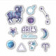Célébrez l'esprit confiant et intrépide du Bélier avec cette collection de stickers du zodiaque magnifiquement détaillée. Avec une illustration céleste du Bélier, de la constellation du Bélier, du symbole du zodiaque, du symbole de l'élément Feu et du symbole de la planète Mars, ce design est entouré de lunes rêveuses, de planètes et d'étoiles pour une atmosphère cosmique magique.