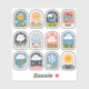 Un ensemble fantaisiste d'autocollants météo. Pluie, neige, vent ou soleil, ces derniers ajouteraient beaucoup à toute collection de gratte-ciel.