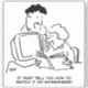 Couple à la recherche de comment activer un nouvel ordinateur. Drôle Caricature de l'ordinateur. Les nouveaux propriétaires d'ordinateurs recherchent dans le livret d'instructions essayant de savoir comment l'allumer. Cadeau pour l'utilisateur d'ordinateur.