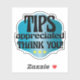 Conseils appréciés autocollant pour l'industrie des services. Les clients ne savent parfois pas quand il est approprié de pourboire, et ces autocollants placés dans votre lieu d'affaires leur feront savoir que le pourboire est apprécié et leur rappellent de pourboire. Parfait pour toute entreprise de service personnel : serveurs et service de restauration, chauffeurs, barmans, coiffeurs, entrepreneurs, réparation à domicile, manicuriste, massothérapeute, toiletteur de chiens ou tatoueur. Promouvoir l'étiquette du pourboire ! Police amusante sur dégradé bleu arrière - plan avec 3 étoiles.