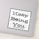 Affichez l'expression de motivation "Keep Being You" sur n'importe quelle surface plate comme les classeurs et les ordinateurs portables. Lettres noires et bordure noire sur arrière - plan blanc.