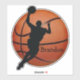 Basketball Design Contour Sticker avec texte facultatif, disponible en différentes tailles.