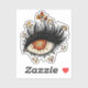 Étiquette à oeil bizarre avec une illustration numérique cool d'un oeil avec un iris fracturé en lave et de longs cils avec des fleurs.
