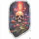 Un autocollant avec l'empreinte d'un crâne de champignon tout droit sorti de l'éther rouge