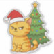 Sticker Cranky Orange Tabby Cat Red Hat Christmas Tree
