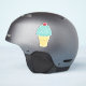 Illustration d'un cône de crème glacée avec une boule de crème glacée bleue surmontée d'arroses et d'une cerise.