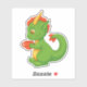 Adorable green baby dragon with red spikes and golden horns is holding a red teacup.