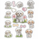 Sticker Cute Blanc et Tan Chiots Fleurs Coeurs