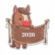Charming cartoon pony holds a decorative scroll banner topped with Christmas ornaments. Great for holiday cards, kids’ crafts, and festive branding. Bright, playful, and family-friendly with seasonal charm.