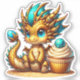 Sticker Cute Chibi Gold et Blue Dragon avec Cupcake