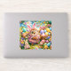 Sticker Cute Easter bunny and colourful eggs whimsical