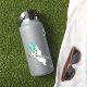 Cet autocollant en vinyle est un mignon fantôme blanc aux grands yeux bleus portant un chapeau bleu vert avec un ruban d'or tenant une canne noire ornée surmontée d'un crâne doré.
