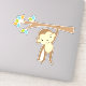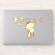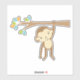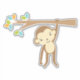 Un décalque vinyle avec une jolie illustration d'un petit singe brun accroché à la branche avec des feuilles bleus et verts.