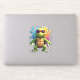 Sticker Cute Turtle Wearing Sunglasses Paint Splash Sea An