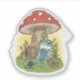 Sticker Cute Whimsical Frog Knitting Illustration