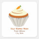 Un autocollant avec l'illustration d'un cupcake à la carotte. Personnalisez avec votre adresse. Recherchez les articles correspondants chez Jill's Paperie.