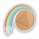 Un autocollant avec le jeu dalgona bonbon multiple triangle, avec un arc-en-ciel rond qui fond