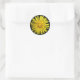 Ce joli autocollant rond floral présente une photo d'une fleur de pissenlit jaune. La photo a été prise en utilisant la macro photographie, ce qui donne des détails si brillants que vous pouvez voir les pétales individuels et les ombres jetés sur eux.