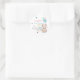 Sticker premier anniversaire est décoré avec un ours en peluche mignon, des ballons et un arc-en-ciel.