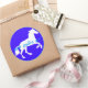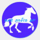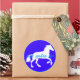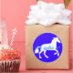 Jolie image d'un cheval blanc jn silohuette contre un arrière - plan bleu royal avec un cadre et les mots "Joyeux anniversaire" en bleu pastel. Pour les amateurs de chevaux.