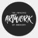 Un autocollant personnalisé en noir et blanc cool qui dit, "L'oeuvre Extraordinaire de Gregory." Parfait pour ajouter à l'arrière de votre oeuvre que vos enfants donnent aux gens.Serait parfait pour les foires artisanales. Customisez l'autocollant avec le nom de votre choix. Vient dans une variété de couleurs. Conçu pour vous par Blackberry Boulevard.