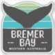 Un design audacieux et accrocheur célébrant la baie de Bremer, dans la région du Grand Sud de l'Australie-Occidentale. Cette oeuvre présente une silhouette saisissante d'une queue de baleine contre un arrière - plan océanique turquoise et vivant.