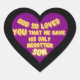 Dieu Aimé; Il s'agit d'un coeur pourpre avec un arrière - plan noir et à l'intérieur du coeur est la partie la plus importante du verset biblique Jean 3:16 "Dieu t'a tellement aimée qu'il a donné son Fils unique". J'aurais aimé qu'il y ait assez d'espace pour écrire le reste du verset qui dit "si nous croyons en Lui, nous aurons la vie éternelle."