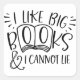 J'aime les gros livres et je ne peux pas mentir autocollant. Texte et plan de livre en noir et blanc.