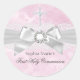 Premier Sticker Communion. Elégant Argent arc en diamant & jolie dentelle blanche. Remarque : Toutes les images plates n'ont pas de vrais arcs ou bijoux !