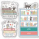 Ce jeu d'autocollants capture le charme d'un livre serein avec des illustrations d'une étagère remplie de livres, une pile de livres avec café confortable, et une phrase ludique pour les lecteurs du week-end. Idéal pour décorer des planificateurs, des revues ou des cadeaux pour les amateurs de livres.