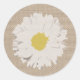 Un autocollant design et moderne avec une marguerite sur une image arrière - plan de burlap. Recherchez des invitations de mariage assorties et plus encore chez Jill's Paperie.