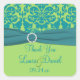 Cet autocollant mariage damassé vert pomme et turquoise a un faux ruban assorti de bijoux. Il correspond au faire-part de mariage ci-dessous. Vous pouvez l'utiliser pour joindre à vos faveurs de mariage, ou sceller vos cartes de remerciements avec. D'autres formes et tailles sont disponibles.