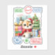 L'autocollant exquis capture un renne joyeux portant un chapeau de Père Noël, tenant une boisson chaude parmi des cadeaux colorés et un sapin décoré. Les timbres festifs mettent en valeur l'esprit joyeux des traditions de vacances, le rendant parfait pour un décor de saison.