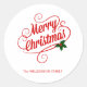 Sticker de Noël PERSONNALISÉ ou sceau d'enveloppe Une police traditionnelle épelle Joyeux Noël. Un seul spring de saint agit comme un garçon sur le script. Votre nom de famille ou tout texte que vous souhaitez est écrit ci-dessous. Utilisez-le comme enveloppe sur vos cartes de Noël ou comme étiquette cadeau sur vos cadeaux.