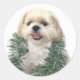 Shih Tzu en guirlande verte avec sa langue en prévision de Noël