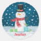 Autocollant marine amusant bleu, rouge et blanc bonhomme de neige. Une touche finale amusante pour vos cartes de Noël.