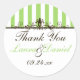 Ce 1,5" rond de rayures vert pomme et blanc avec des rouleaux marron mariage faveur grâce à vous sticker correspond à la faire-part de mariage ci-dessous. Utilisez-le pour joindre à vos faveurs de mariage, ou comme sceau d'enveloppe pour vos cartes de remerciements. D'autres formes et tailles sont disponibles.