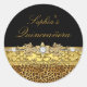 Sticker Quinceanera. Or & noir avec Empreinte de léopard. Exclusive Zazzle. Customisez avec vos propres détails. VEUILLEZ NOTER toutes les images plates ! Ils n'ont pas de véritable or, diamants ou bijoux! !