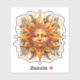 La décalcomanie de vinyle présente l'illustration d'un art numérique généré par l'IA d'une face solaire cosmique / païenne sur un arrière - plan céleste abstrait. Parfait pour les ordinateurs portables, les casiers ou même les fenêtres de voiture.