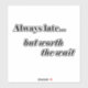 Es-tu toujours en retard ? Faites savoir à tout le monde pourquoi vous êtes cette personne sur la route avec cet autocollant d'autocollants. Vous êtes peut-être en retard tout le temps mais je parie que vous méritez bien l'attente.