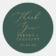 Ces délicats stickers or et vert remercient sont parfaits pour une réception de mariage moderne. Le design minimaliste romantique présente une belle et élégante typographie de champagne jaune doré sur un arrière - plan vert émeraude à l'allure simple et épurée. Personnalisez les étiquettes autocollants avec vos noms, l'événement (le cas échéant) et la date. Ces autocollants peuvent être utilisés pour une réception de mariage, une douche nuptiale ou tout événement!